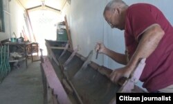 La falta de embarcaciones ha obligado a los remeros a usar botes remendados. Foto Alejandro Tur Valladares