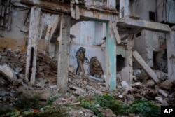 Edificios ruinosos y derrumbados bordean la calle San Lázaro, donde un hombre, a la izquierda, recoge ladrillos en el centro de La Habana (10 de octubre de 2023). (AP/Ramón Espinosa).